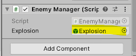 敵ObjectのInspectorにEnemyManagerが張り付いているはずなので、
